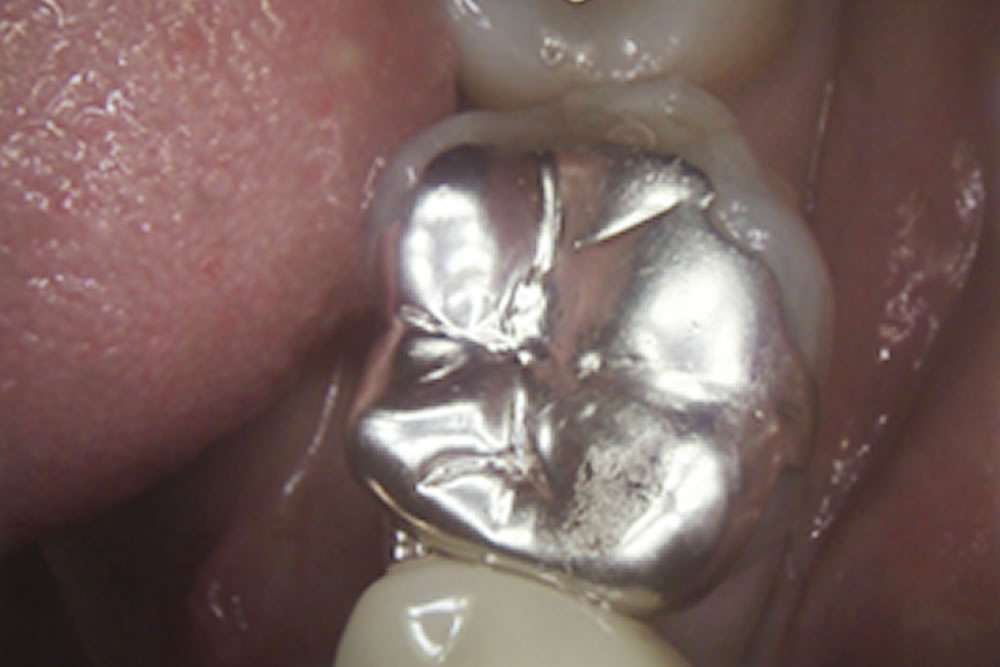 こちらの患者さまは、過去の治療で入れた銀歯部分の違和感を主訴に来院されました。