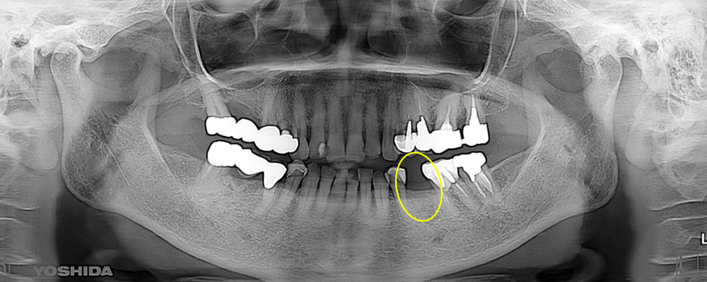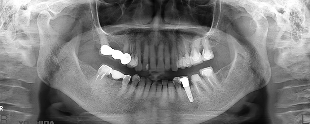 左下の奥歯の欠損部分にインプラントを埋入してしっかり噛める状態に回復。