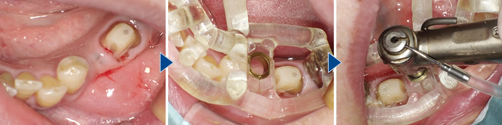 こちらの患者さまは、かぶせ物が外れたため2018年8月に他院を受診されました。精査の結果、歯根が破折していることが判明し、抜歯となりました。前医では抜歯後2年間は治療ができないと説明を受け、不便さを感じたため当院へ来院されました。